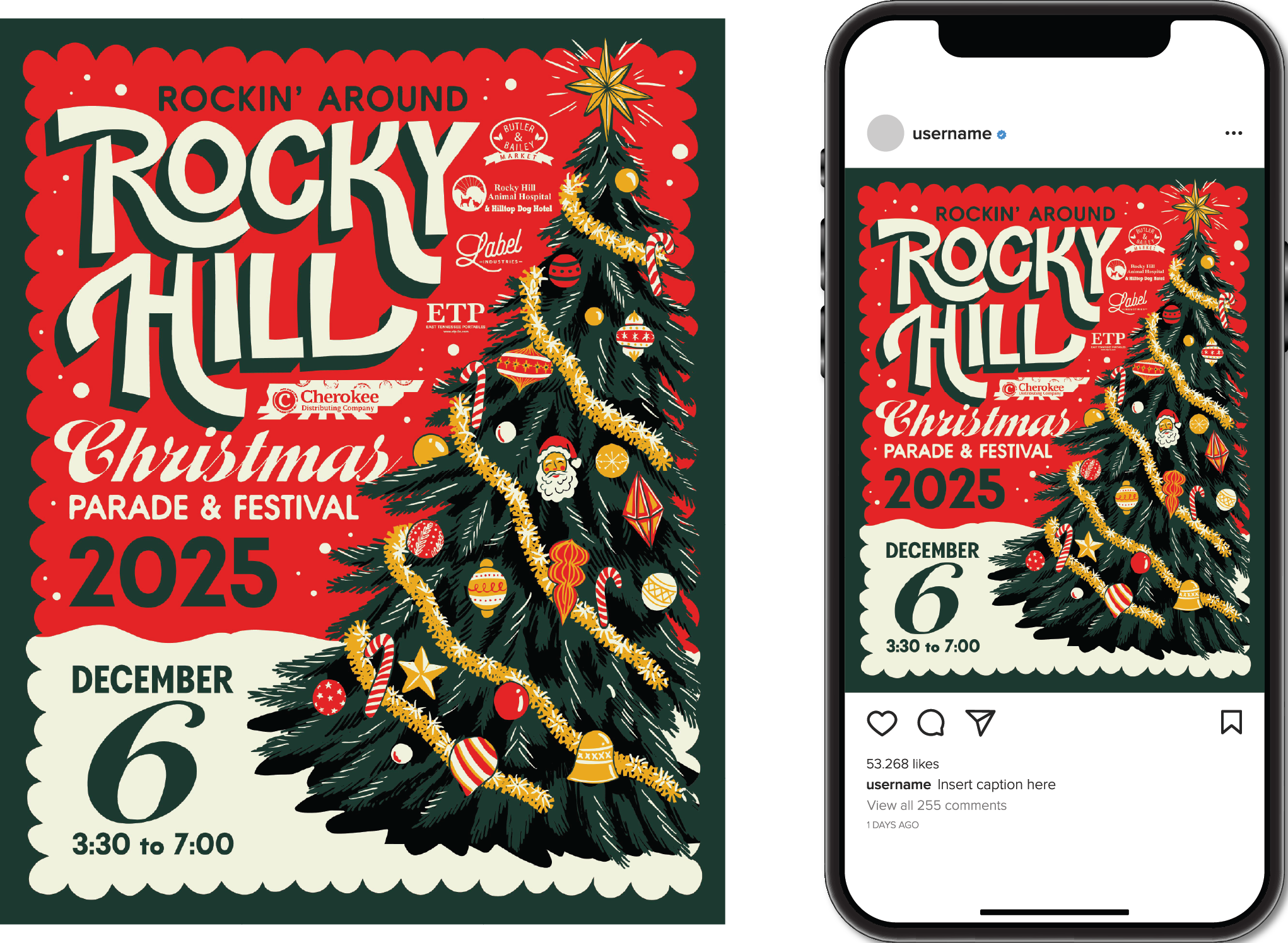 The Rocky Hill Christmas Parade is a beloved event in the small community of Rocky Hill in Knoxville, TN. The branding for this parade every year is meant to reflect a season that friends, family, and community can get together and celebrate together the joy and peace of the Christmas holiday.