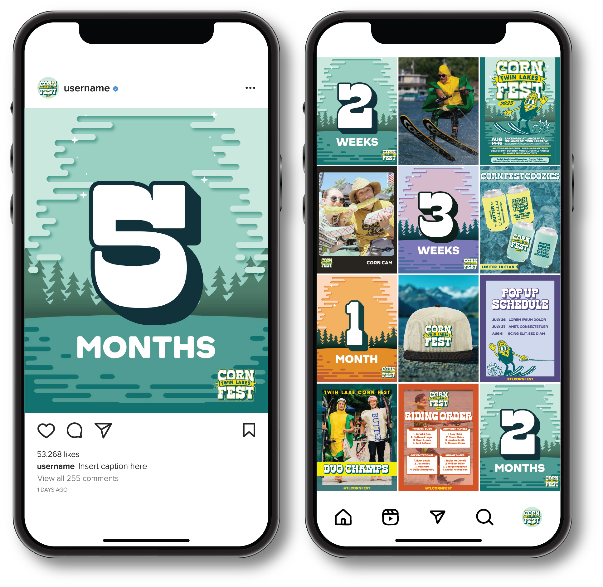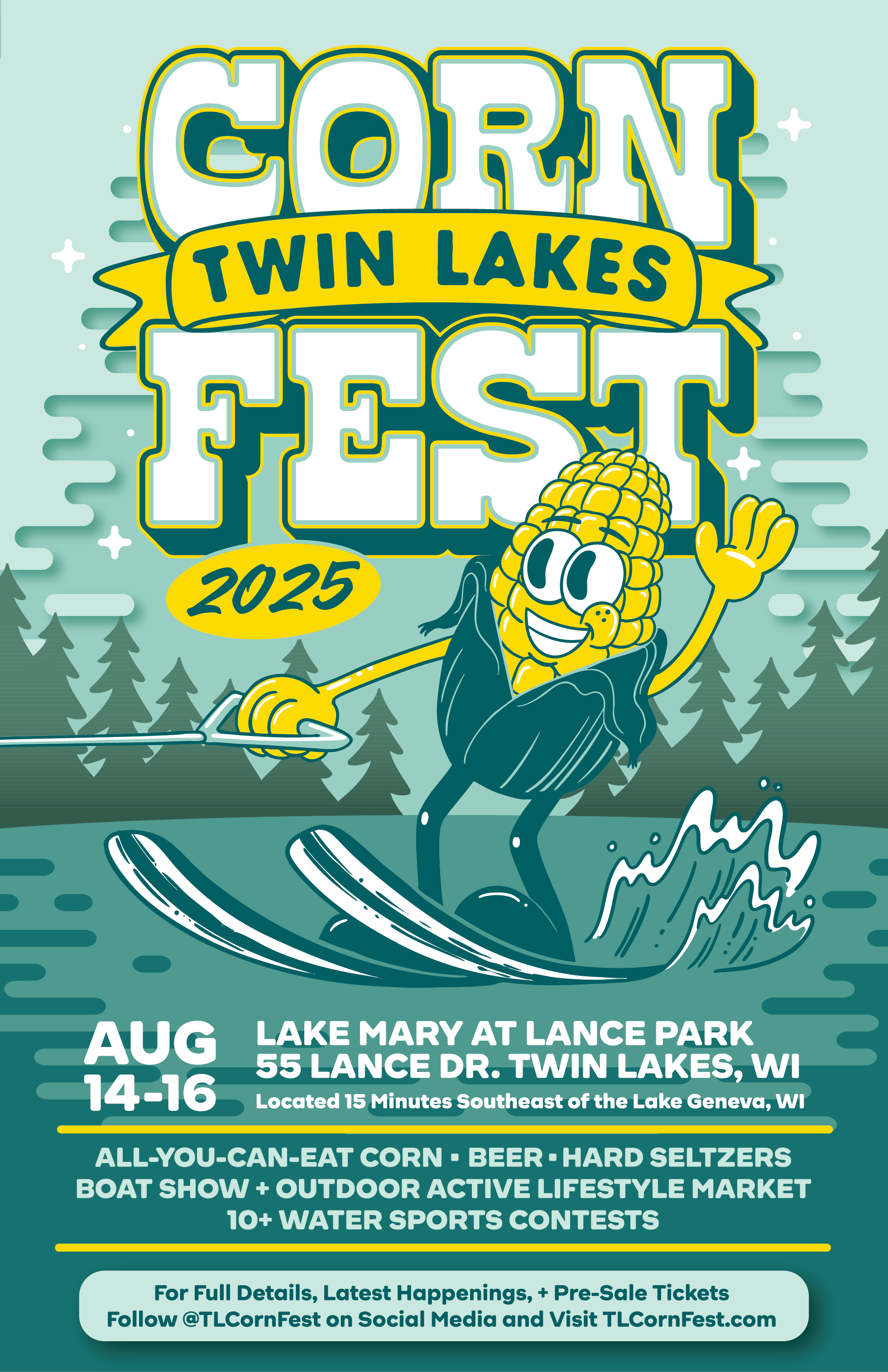 Twin Lakes Corn Fest was an exciting project to work on because the client wanted a more playful, vintage feel to their branding, and they gave me a lot of creative freedom. While Corn Fest is all about the water sports, the client wanted corn to remain a core aspect of their branding.